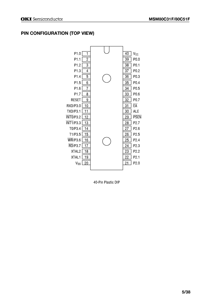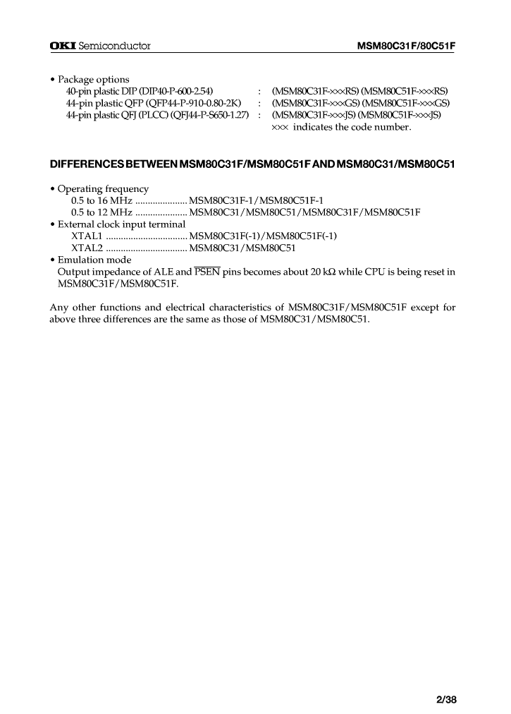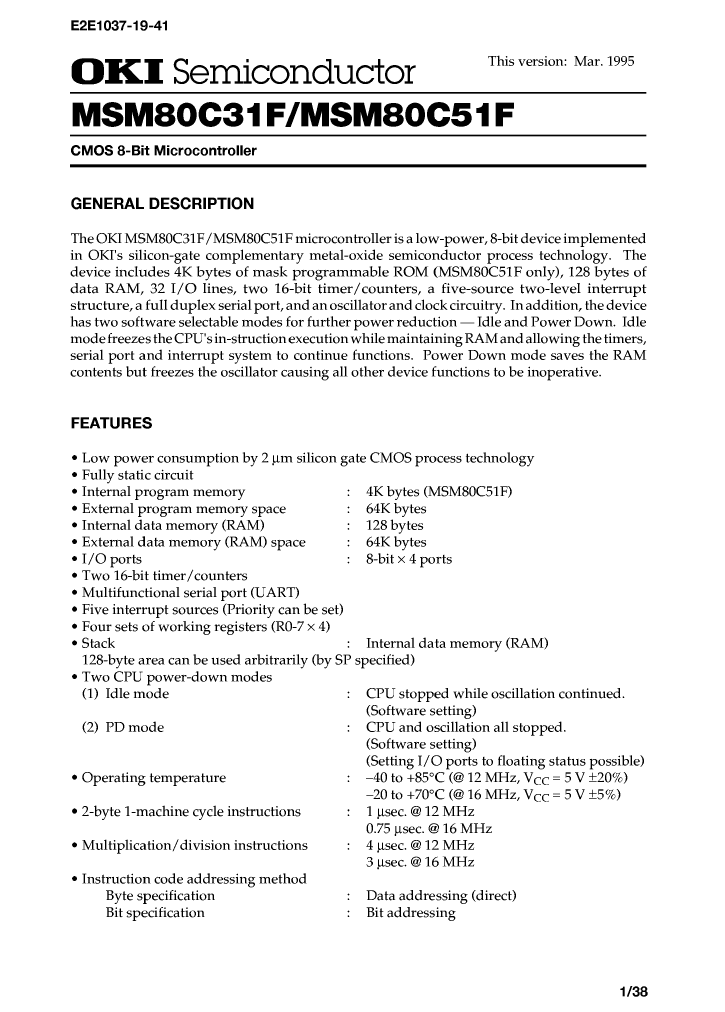 这份文档是关于OKI Semiconductor的MSM80C31F/MSM80C51F系列CMOS 8位微控制器的数据手册。以下是一些值得关注的技术信息: