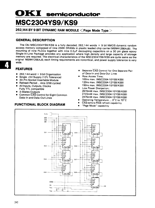 Page Mode DRAM, 256KX9, 120ns, MOS