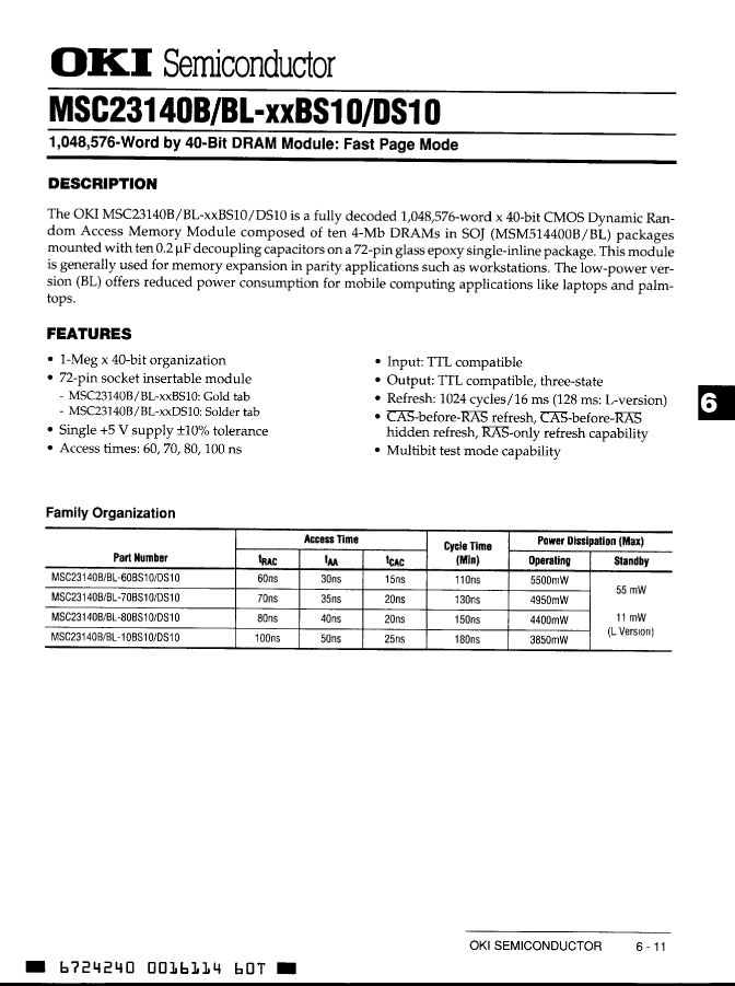 Memory IC, 1MX40, CMOS, PSMA72 |