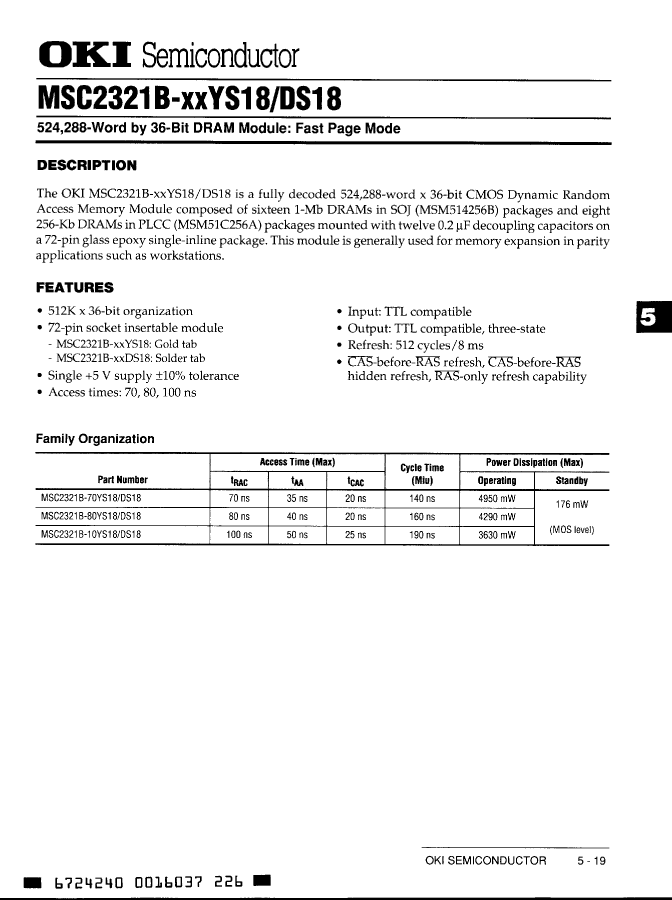 Fast Page DRAM Module, 512KX36, 70ns, CMOS, PSMA72,