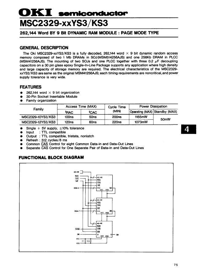 描述 Page Mode DRAM, 256KX9, 100ns, CMOS, Page Mode DRAM, 256KX9, 120ns, CMOS,
