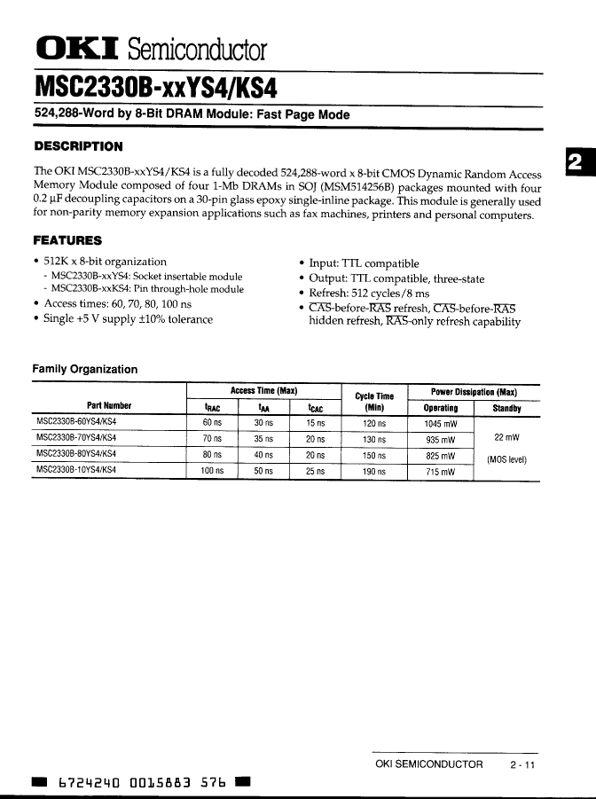 Fast Page DRAM Module, 512KX8, 60ns, CMOS,