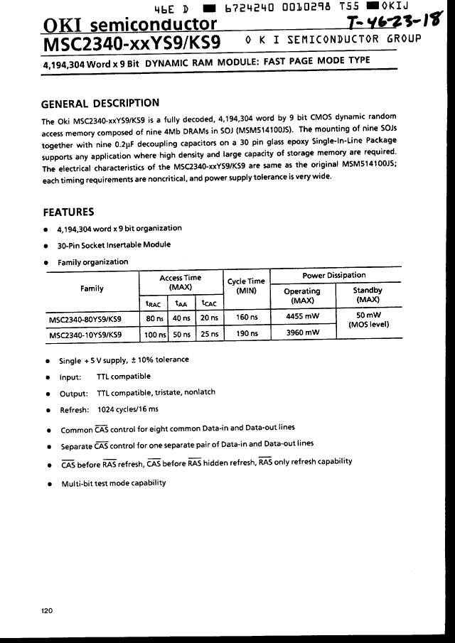 Fast Page DRAM Module, 4MX9, 80ns, CMOS, PSMA30,
