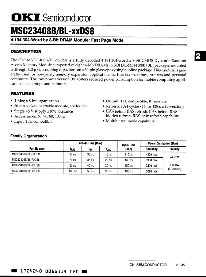 Fast Page DRAM Module, 4MX8, 100ns, CMOS, PSMA30,