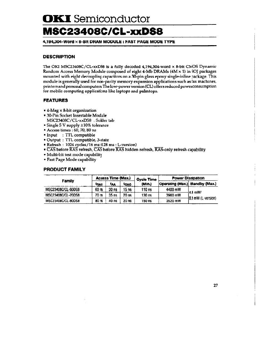 Fast Page DRAM Module, 4MX8, 80ns, CMOS, PSMA30,