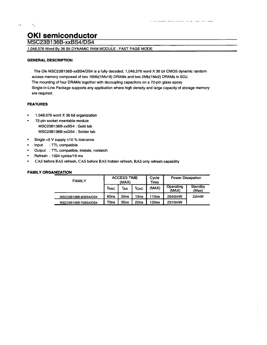 Fast Page DRAM Module, 1MX36, 70ns, CMOS, PSMA72