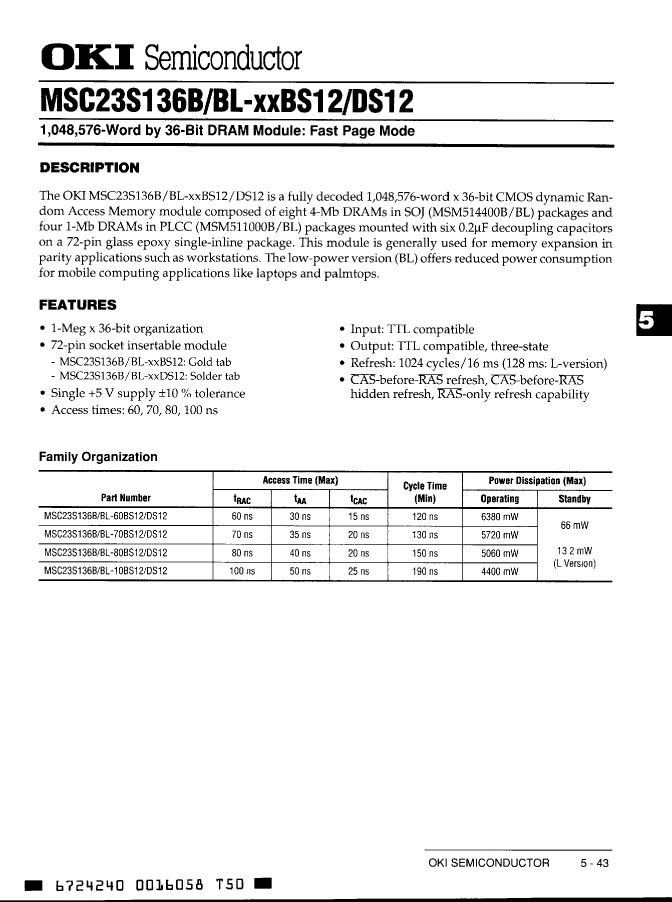 Fast Page DRAM Module, 1MX36, 100ns, CMOS, PSMA72,