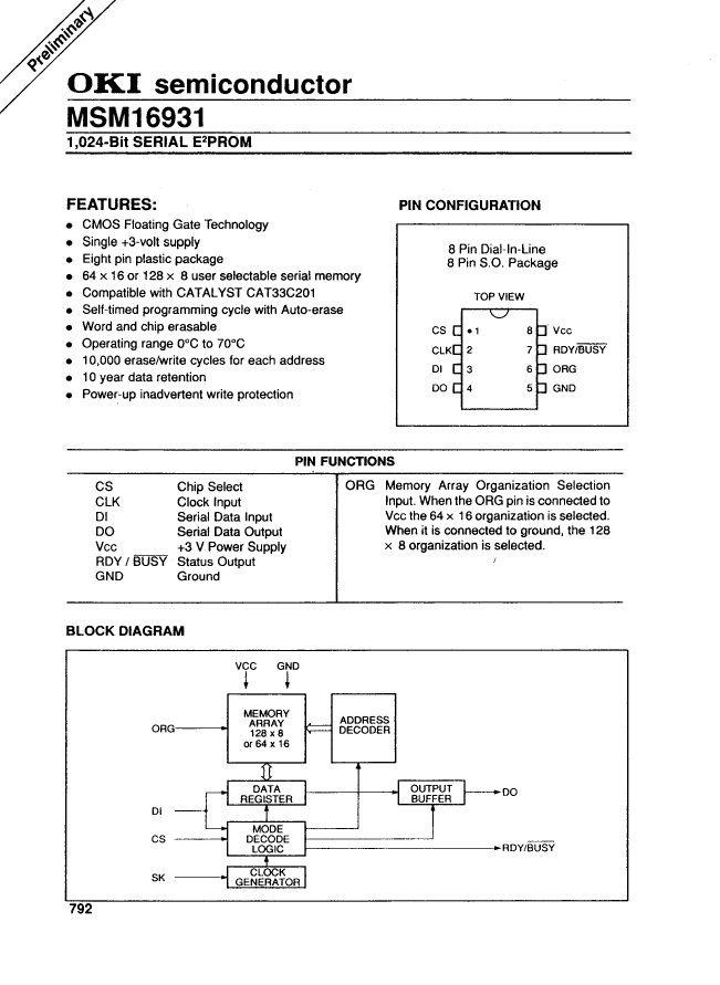 描述 EEPROM, 64X16, Serial, CMOS, PDSO8 EEPROM, 64X16, Serial, CMOS, PDIP8