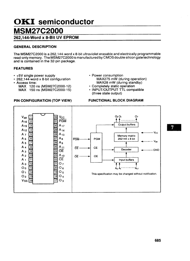 OTP ROM, 256KX8, 120ns, CMOS, PDIP32