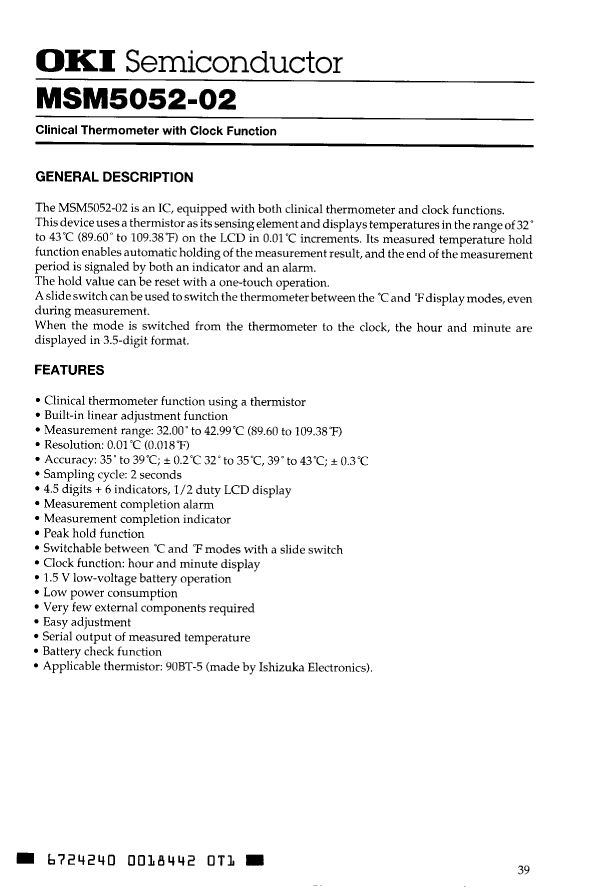 Microcontroller, 4-Bit, MROM, OLMS-50 CPU, 0.03MHz, CMOS