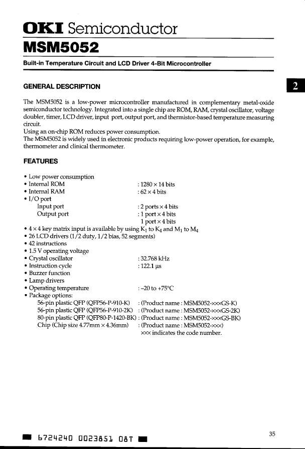 | 型号 | MSM5052GS-2K | MSM5052GS-K | MSM5052GS-K-QFP80 | MSM5052GS | MSM5052GS-S | MSM5052 | MSM5052GS-BK |