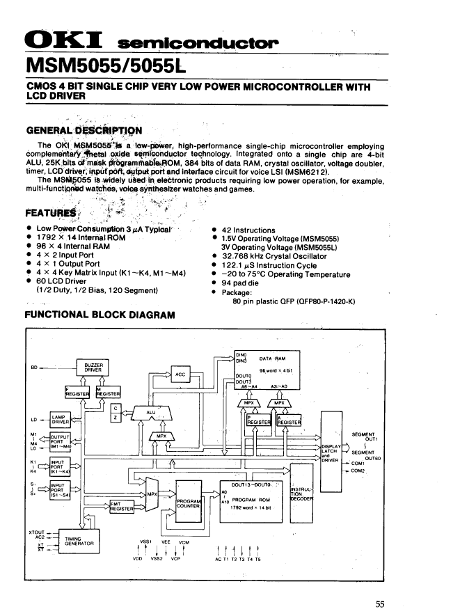 Microcontroller, 4-Bit, MROM, OLMS-50 CPU, 0.032MHz, CMOS, PQFP80