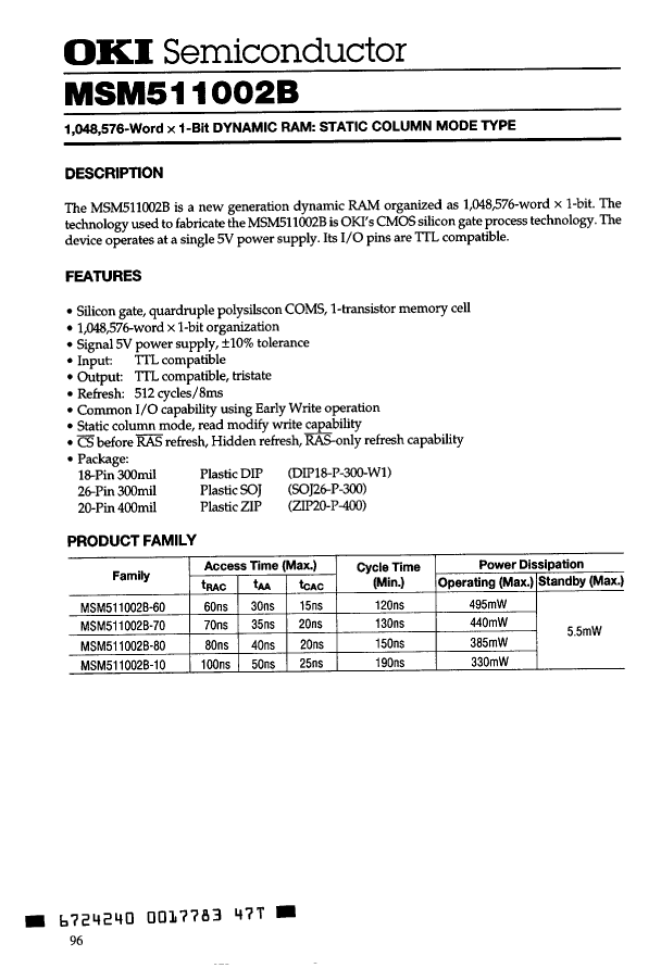 | 内存集成电路类型 | STATIC COLUMN DRAM | STATIC COLUMN DRAM | - | STATIC COLUMN DRAM | STATIC COLUMN DRAM | STATIC COLUMN DRAM |