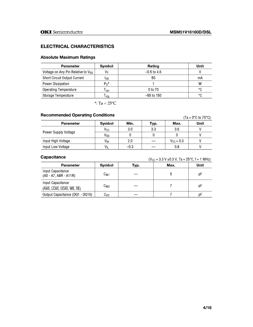 与MSM5116160A-70JS相近的元器件有:MSM5116160A-70TS-K、MSM5116160A-60TS-K。描述及对比如下: