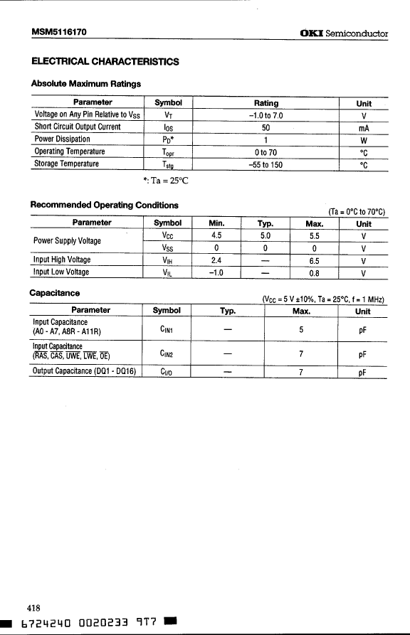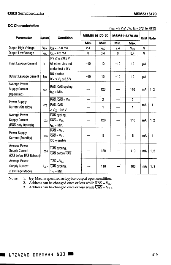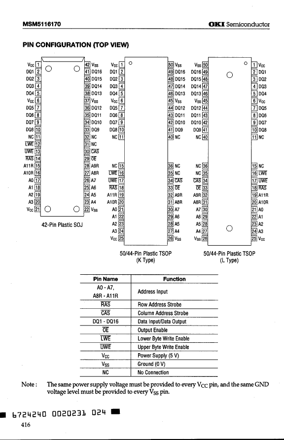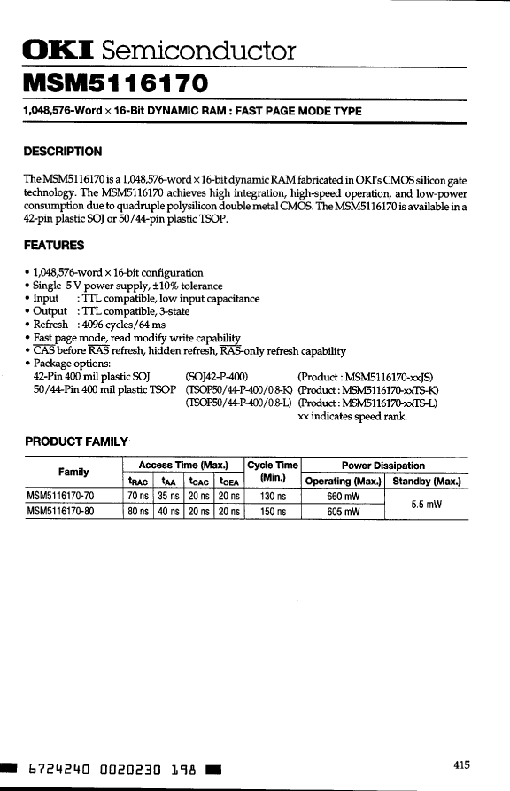 | 型号 | MSM5116170-70JS | MSM5116170-80JS | MSM5116170-70TS-K | MSM5116170-80TS-K | MSM5116170-70TS-L |