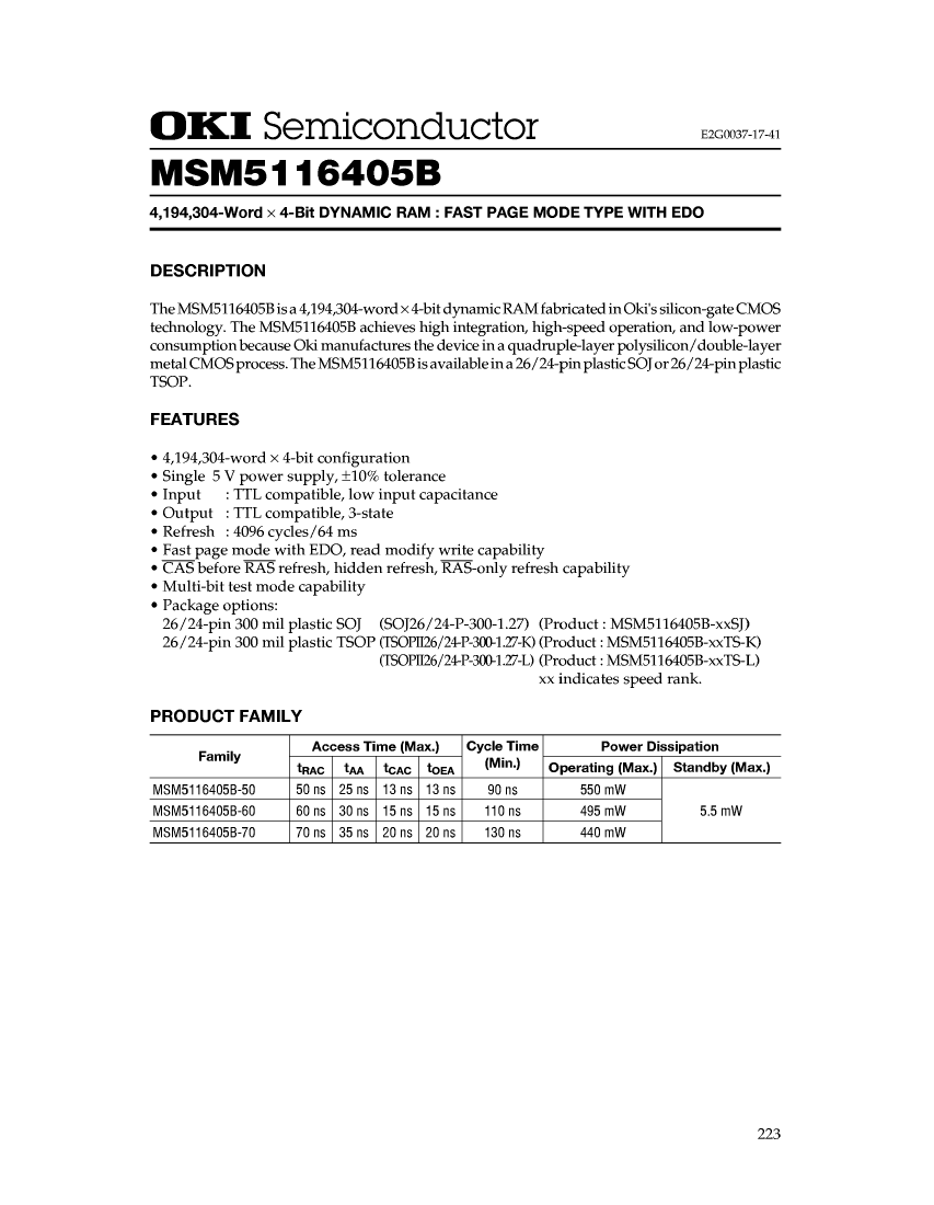 | 型号 | MSM5116405B-50SJ | MSM5116405B-50TS-L | MSM5116405B-70TS-L | MSM5116405B-60SJ | MSM5116405B-70SJ | MSM5116405B-60TS-K |