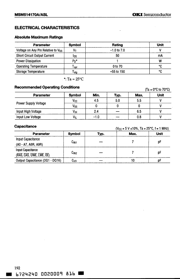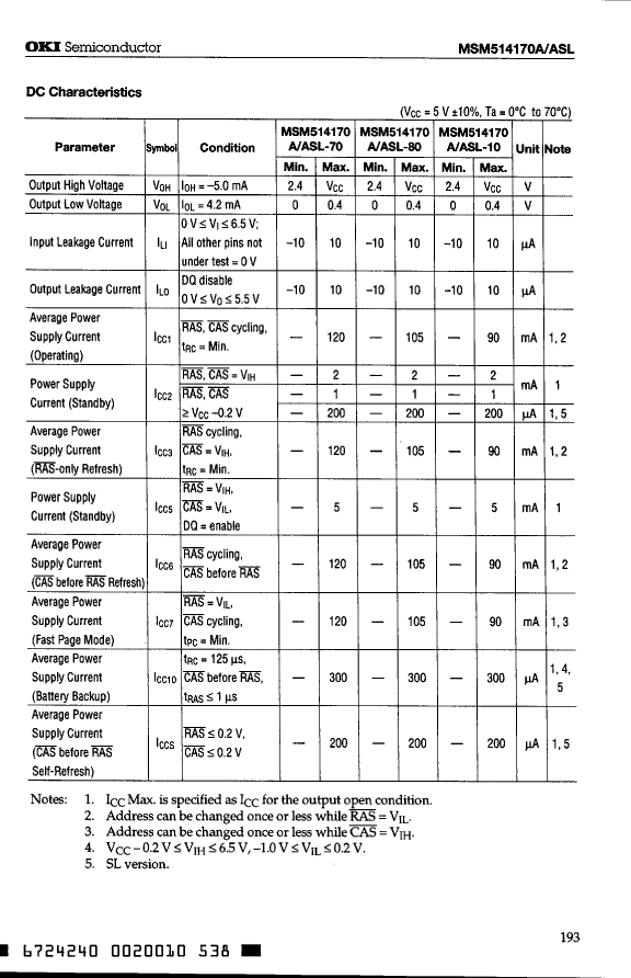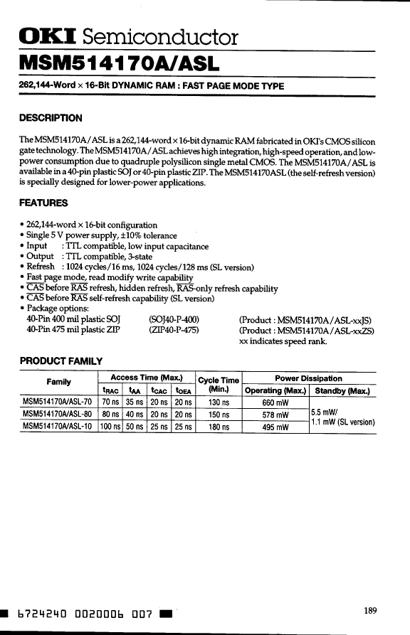 型号 MSM514170ASL-80ZS MSM514170A-10JS MSM514170ASL-80JS MSM514170ASL-10JS MSM514170ASL-70ZS MSM514170ASL-10ZS MSM514170A-70JS
