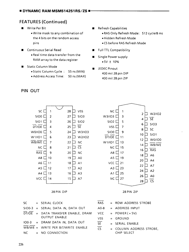 Video DRAM, 256KX4, CMOS, PDIP28