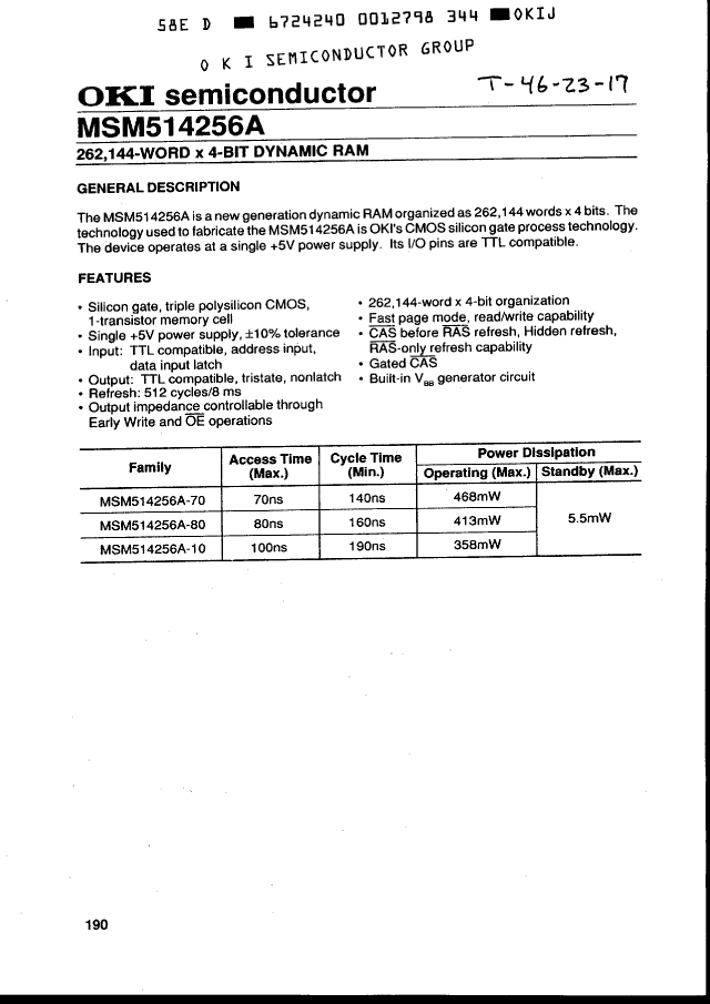 型号 MSM514256A-80ZS MSM514256A-70ZS