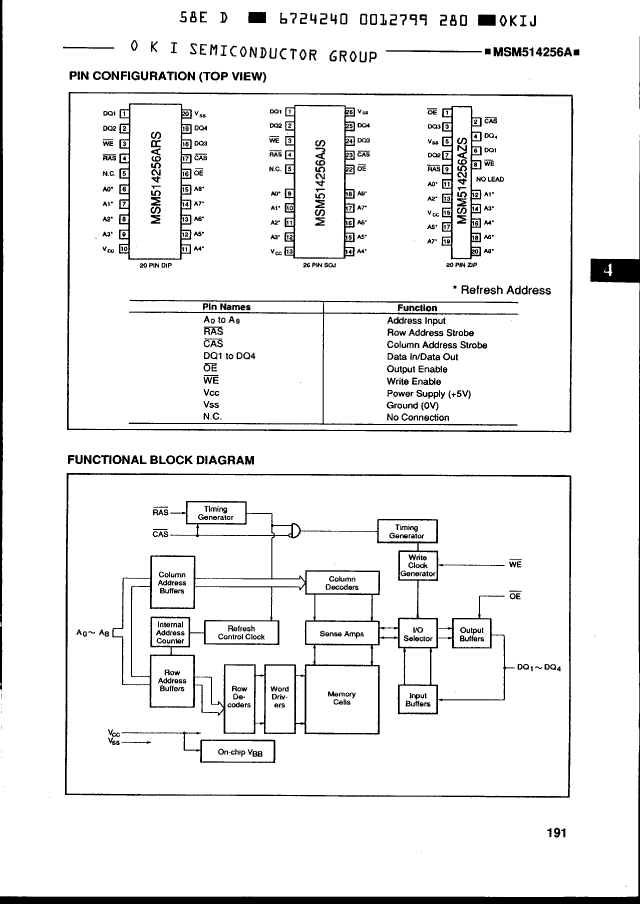Fast Page DRAM, 256KX4, 80ns, CMOS, PZIP20
