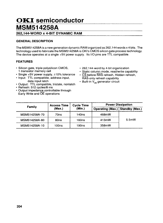 Static Column DRAM, 256KX4, 80ns, CMOS, PDIP20