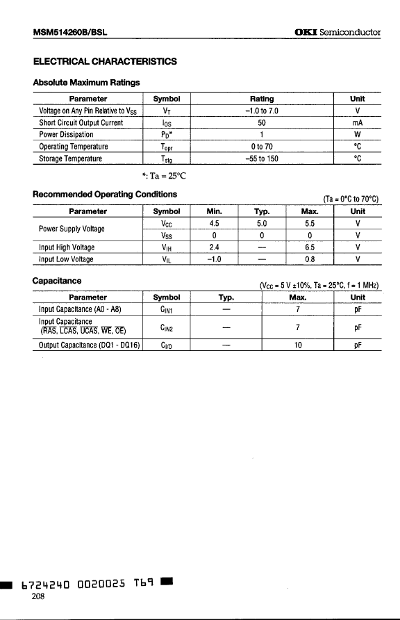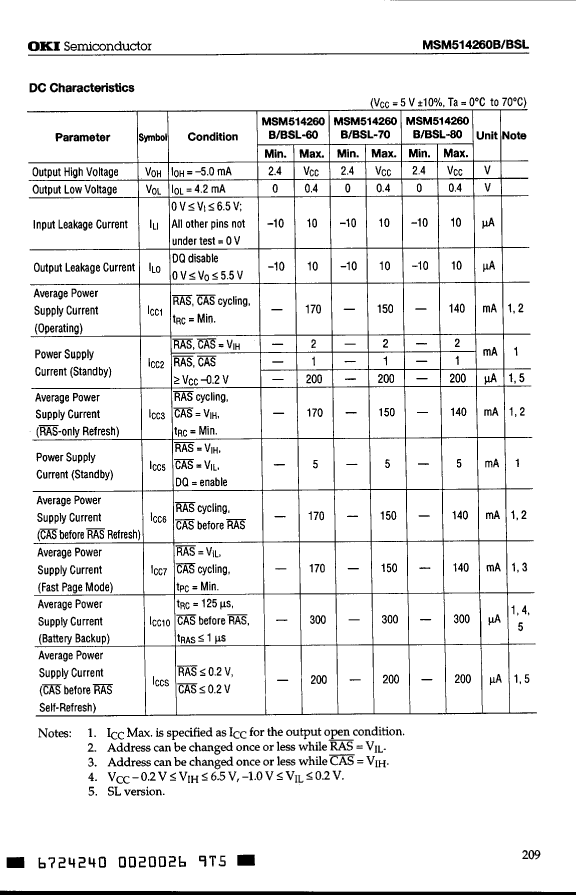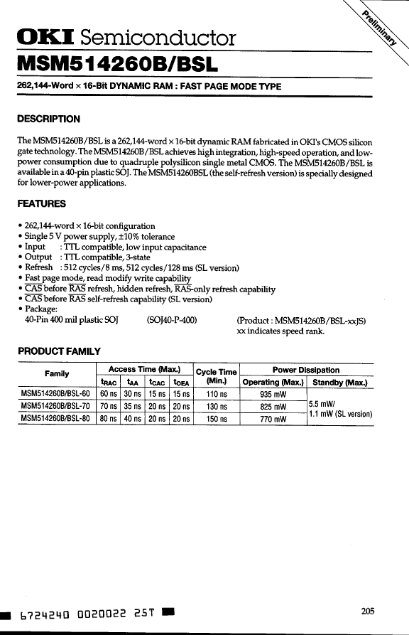 与MSM514260B-70JS相近的元器件有:MSM514260BSL-60JS。描述及对比如下: