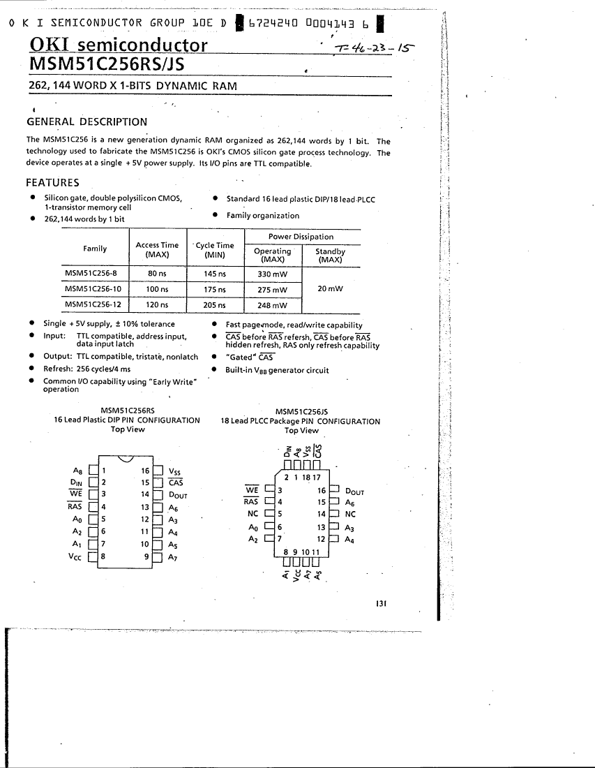 型号 MSM51C256A-70RS MSM51C256A-80RS MSM51C256-12JS MSM51C256-80JS MSM51C256-8RS MSM51C256-12RS MSM51C256A-10RS MSM51C256-10RS