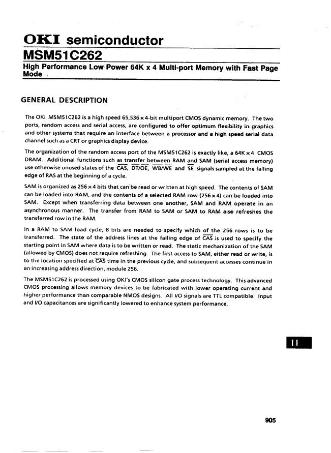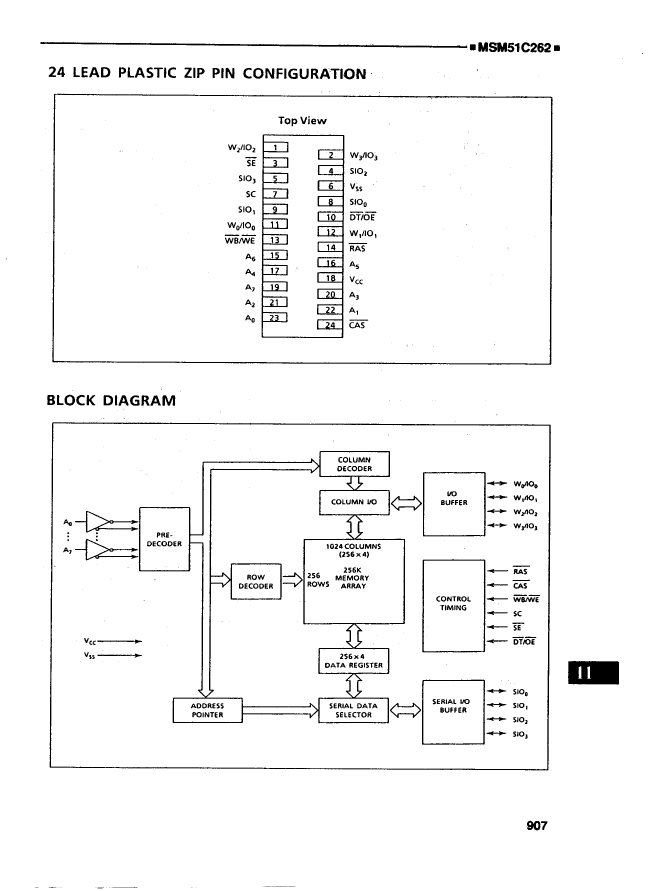 Video DRAM, 64KX4, CMOS, PZIP24