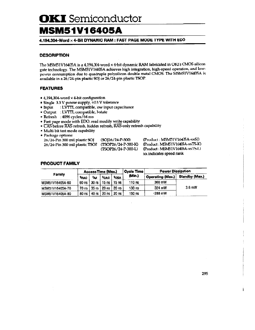 与MSM51V16405A-80TS-L相近的元器件有:MSM51V16405A-70TS-K、MSM51V16405A-60SJ、MSM51V16405A-80TS-K。描述及对比如下: