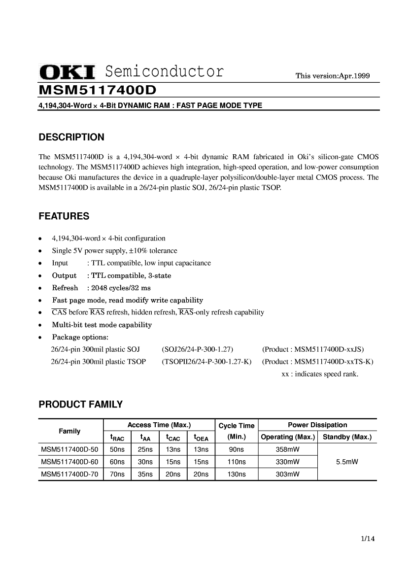型号 MSM51V17400-60TK MSM51V17400-80TK MSM51V17400-80TL MSM51V17400-70TL MSM51V17400-70TK MSM51V17400-60TL