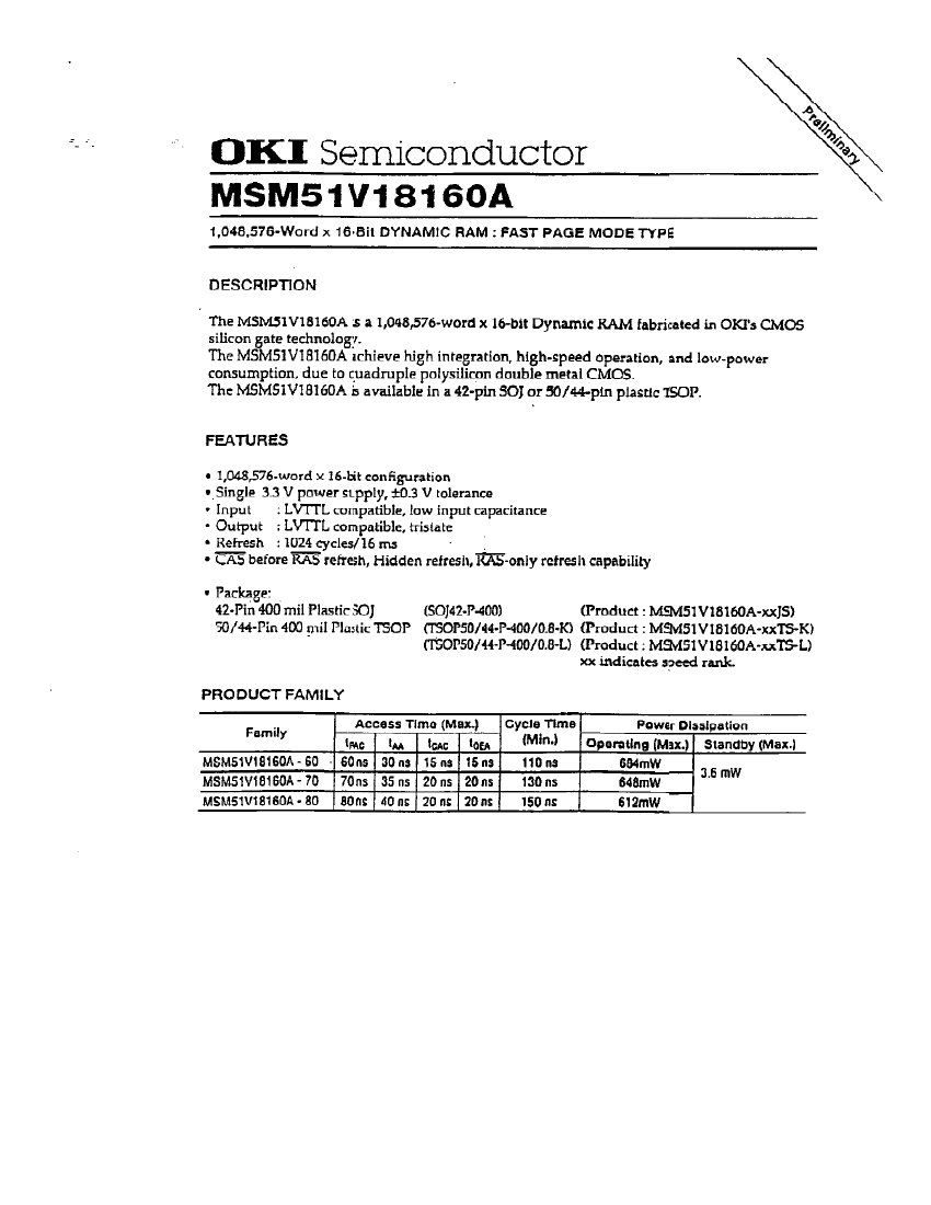 型号 MSM51V18160A-60JS MSM51V18160A-60TS-L MSM51V18160A-80TS-K MSM51V18160A-80JS