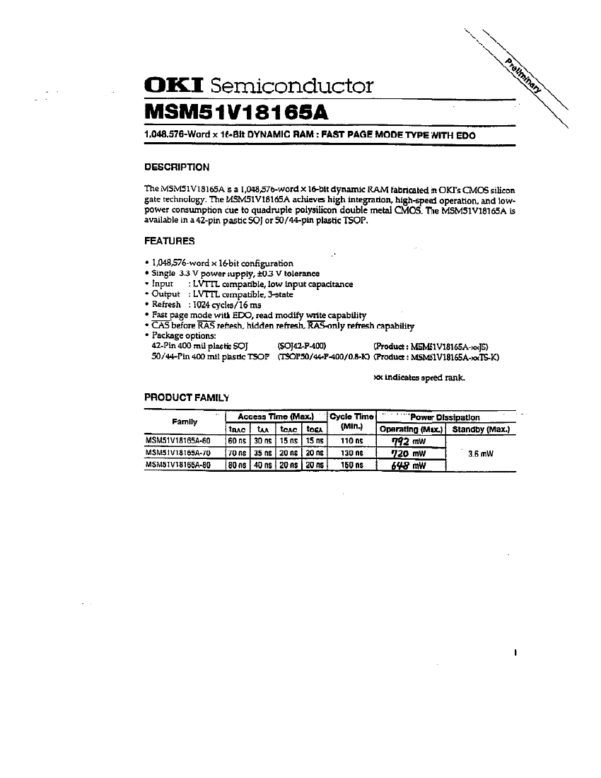 与MSM51V18165A-60JS相近的元器件有:MSM51V18165A-70TS-K、MSM51V18165A-80TS-K。描述及对比如下: