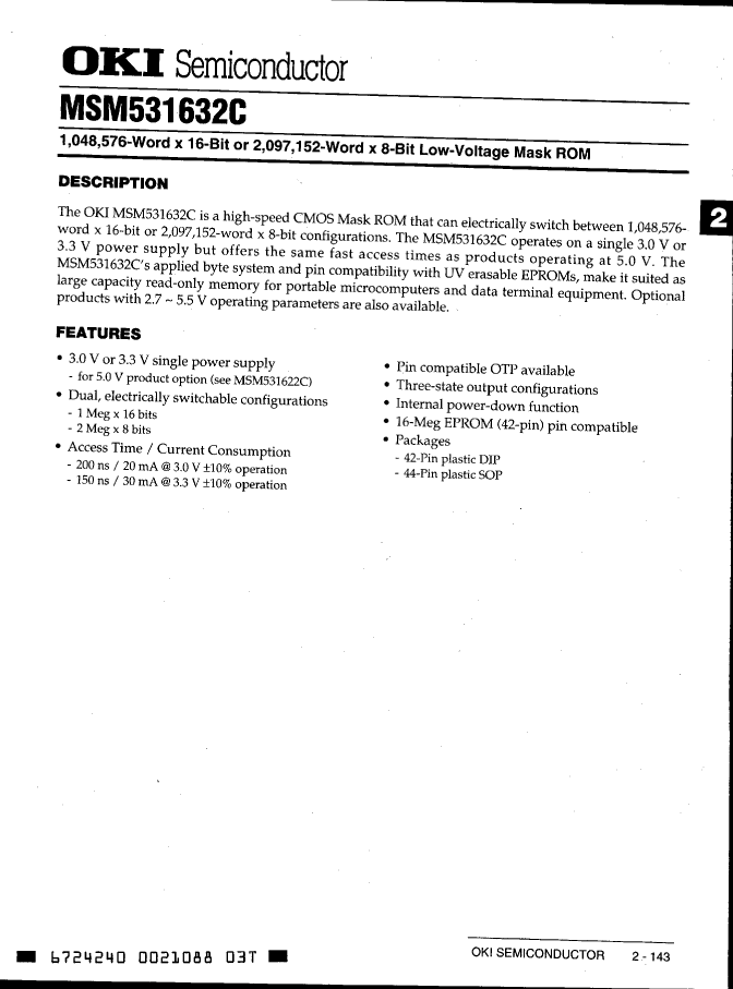 描述 MASK ROM, 1MX16, 150ns, CMOS, PDIP42 MASK ROM, 1MX16, 150ns, CMOS, PDSO44