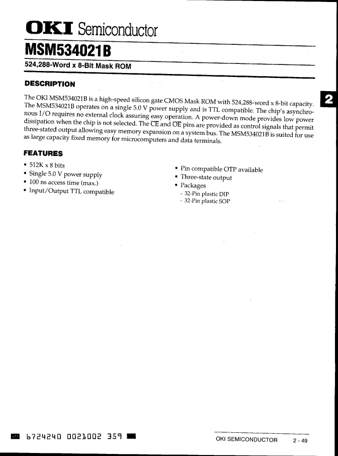 MASK ROM, 512KX8, 100ns, CMOS, PDIP32 |