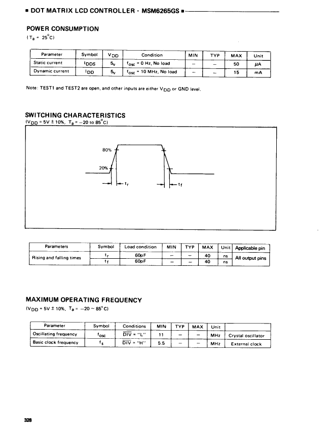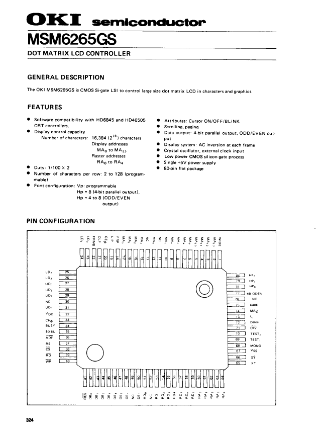 产品描述:MSM6265GS是一款用于控制大型点阵LCD显示字符和图形的CMOS Si-gate LSI。