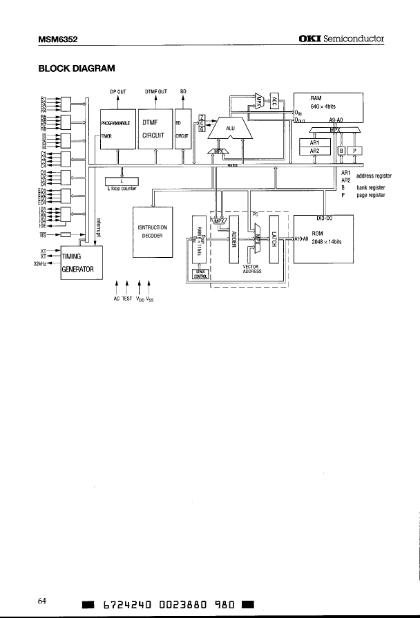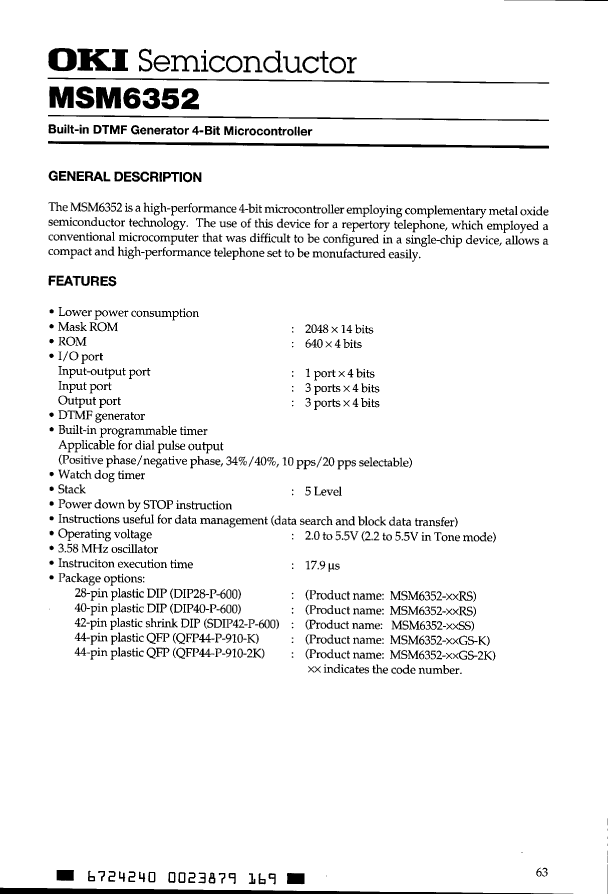 Microcontroller, 4-Bit, MROM, OLMS-63 CPU, 3.58MHz, CMOS, PDIP40