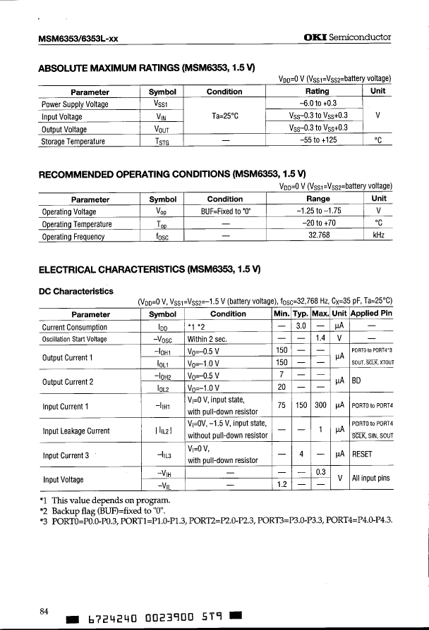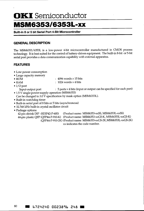 | 型号 | MSM6353SS | MSM6353LSS | MSM6353LGS-2K | MSM6353LGS-K | MSM6353GS-2K | MSM6353GS-K |