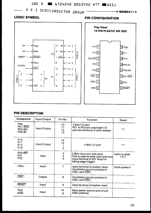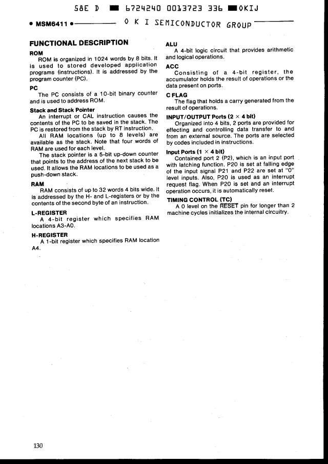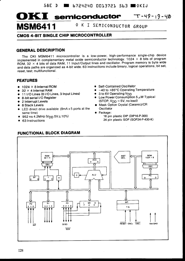 Microcontroller, 4-Bit, MROM, OLMS-64 CPU, 4.2MHz, CMOS, PDIP16