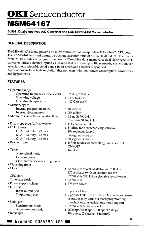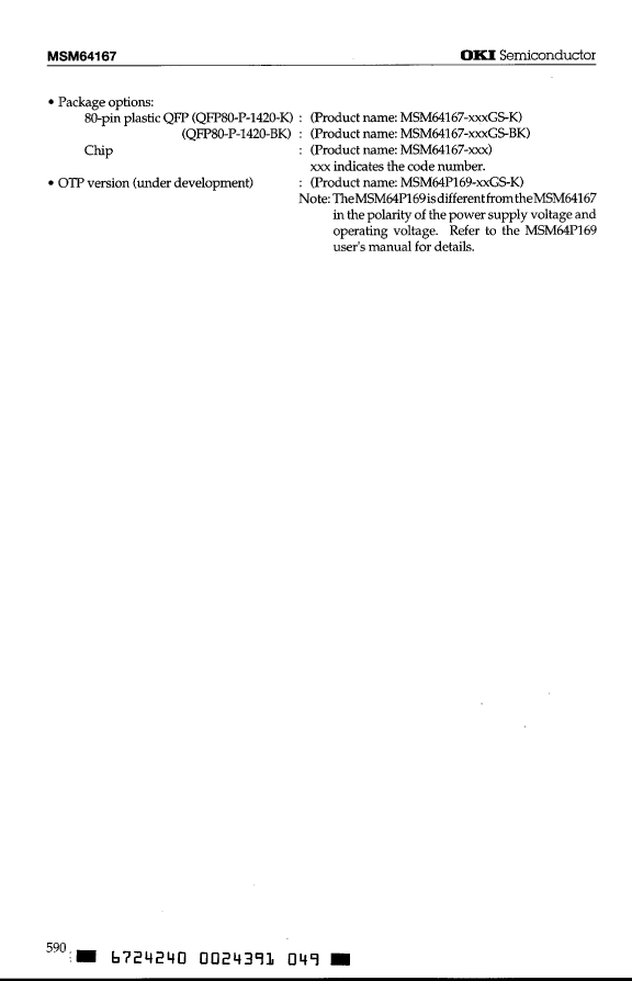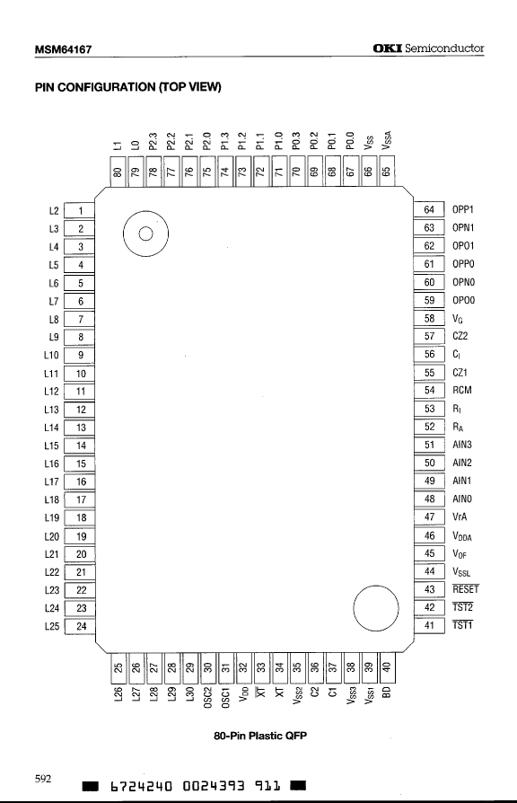 Microcontroller, 4-Bit, MROM, OLMS-64K CPU, 0.91MHz, CMOS, PQFP80