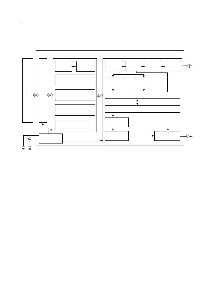 quartz oscillation circuit, host CPU interface (clock synchronous serial / UART), a transmit/