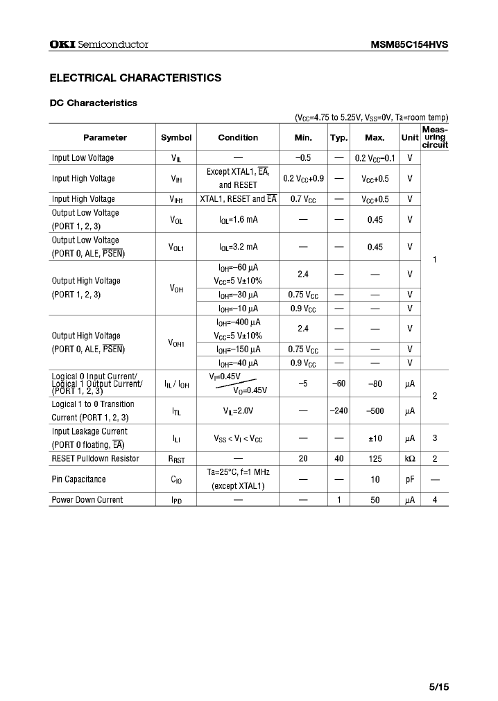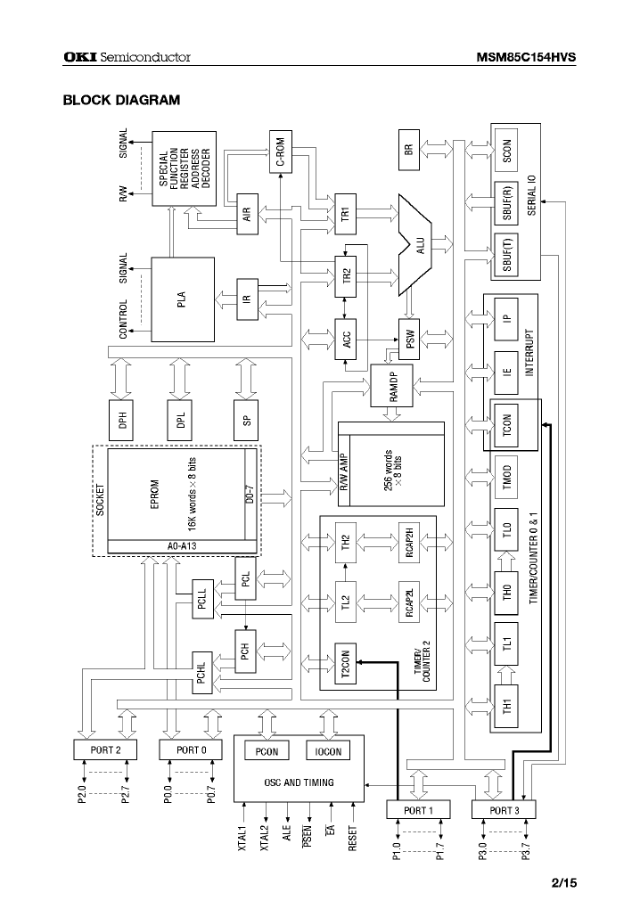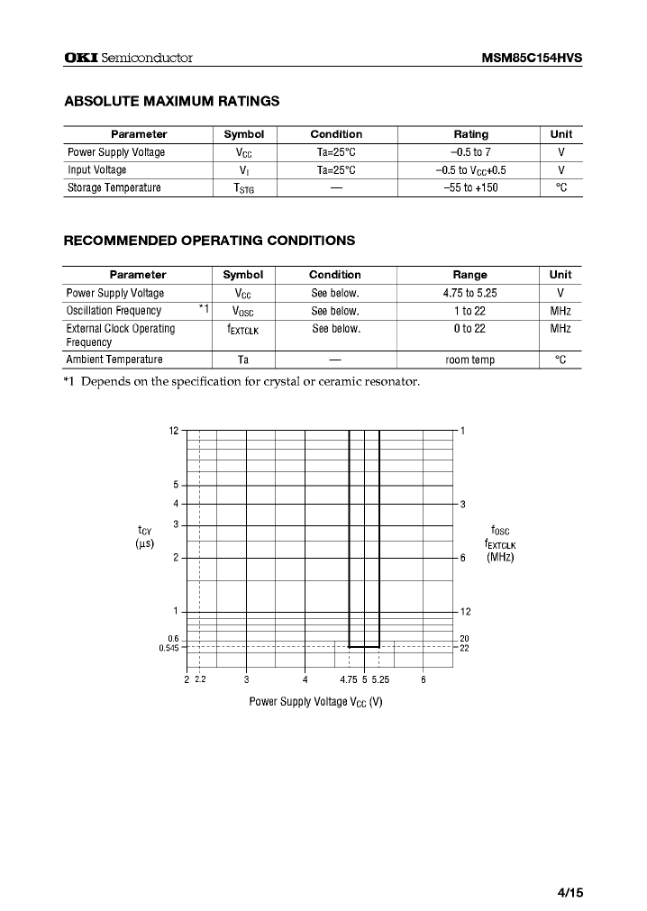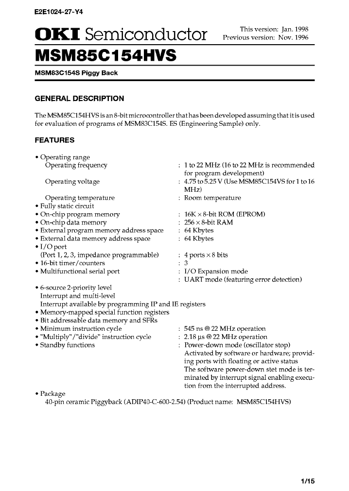 这份文档是关于OKI Semiconductor的MSM85C154HVS微控制器的数据手册。以下是一些值得关注的技术信息: