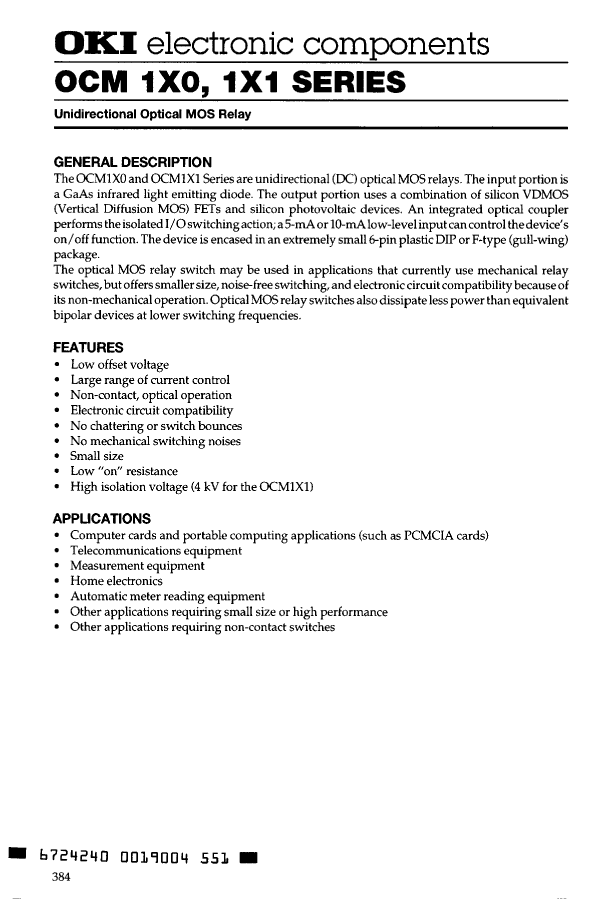 与OCM120F相近的元器件有:OCM100F、OCM110F、OCM140、OCM140F。描述及对比如下: