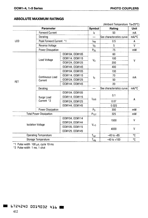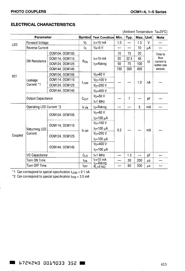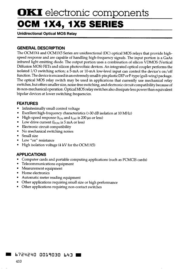 与OCM145F相近的元器件有:OCM125、OCM125F、OCM114F、OCM115、OCM115F、OCM105F。描述及对比如下: