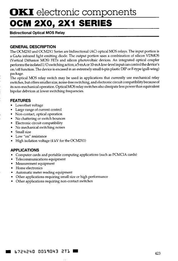 与OCM220F相近的元器件有:OCM200F、OCM210、OCM210F。描述及对比如下: