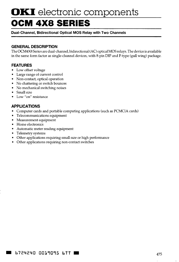 与OCM428F相近的元器件有:OCM418F、OCM408F、OCM448F。描述及对比如下: