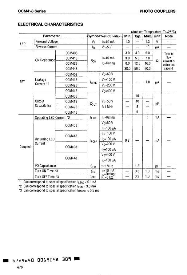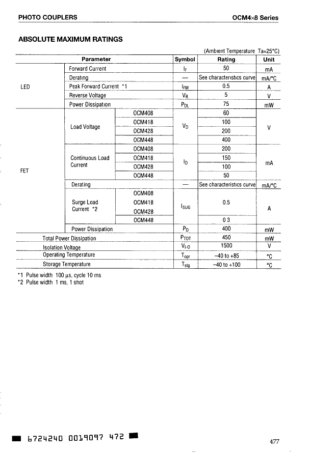 描述 FET Output Optocoupler FET Output Optocoupler FET Output Optocoupler FET Output Optocoupler
