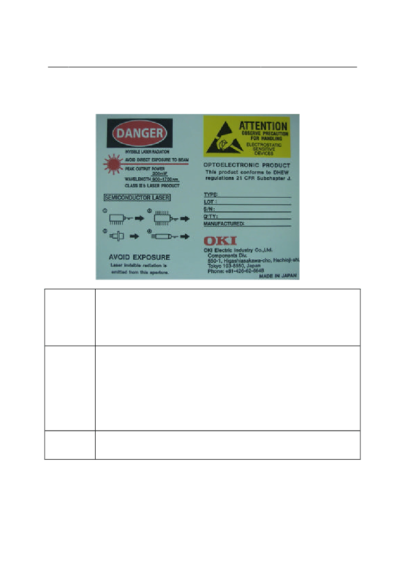 Optical Fiber When the fiber is broken or damaged, handle carefully to avoid injury from