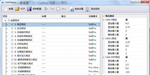 图 8 CANTester物理层与数据链路层一致性测试部分项目