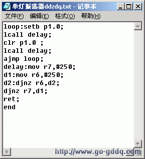 第一步,新建一个TXT格式的文本文件,写入一个简单的汇编程序,然后存盘,注意其中的分号“;”要采用默认的,不要采用其它输入法里面的“;”,否则在随后的编译过程中将会产生编译失败。 |