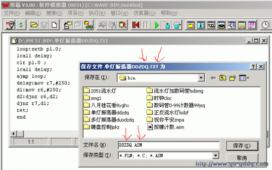 | 这样就在你保存那个*.ASM 文件的目录编译生成了相关的*.BIN、*.HEX、*.LST文件 |